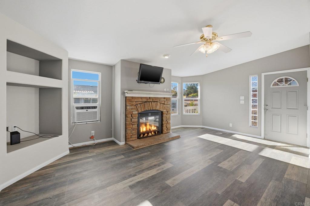 THE ONLY TRIPLE WIDE IN THIS PARK!! Welcome home to this beautifully updated, triple-wide residence tucked into a quiet, welcoming all-ages, low space rent, rent controlled community--perfectly blending comfort, space, and convenience! This expansive 3-bedroom, 2-bath home offers a bright and open feel with vaulted ceilings in two separate living areas, three skylights, and two solar tubes that flood the interior with natural light. Cozy up by one of the two fireplaces or enjoy year-round comfort with whole-house A/C plus individual energy-efficient A/C units in three bedrooms and the living room. The thoughtfully designed layout includes a dedicated laundry room, four exterior exit doors (each one with a security screen), and fresh new paint inside and out. One bathroom was completely remodeled just three years ago, and the kitchen remodel is currently in progress--making this an exciting opportunity to enjoy modern updates. Major systems have already been taken care of, including a water heater and refrigerator (both just one year old), a furnace, and a roof professionally repaired and treated with Roof Maxx two years ago to extend its longevity. The home was also termite tented two years ago for added peace of mind, and all exterior trim has been recently repaired. Step outside to a large, flat backyard with a gentle slope--ideal for entertaining, gardening, or creating your own outdoor oasis. The exterior stairs have also been updated, with one newly replaced and the other just two years old. The community of Green Tree Mobile Estates features a sparkling community pool, a community clubhouse, on-site laundry facilities, shuffleboard courts, and RV parking for your toys. Enjoy the peaceful surroundings of this safe and quiet neighborhood, where friendly neighbors and nearby parks, grocery stores, and restaurants create an ideal setting for everyday life. Location is everything, and this home truly delivers. Enjoy being less than half a mile from the I-15 and 78 freeways with easy access to the I-15 South commuter lane. Escondido Middle School, Albertsons, Home Depot, Target, shops, and restaurants are all less than a mile away. The community offers a wonderful mix of seniors and young families, creating a friendly, vibrant neighborhood feel. This is a rare opportunity to own a spacious, well-maintained home in a prime location--don't miss it!