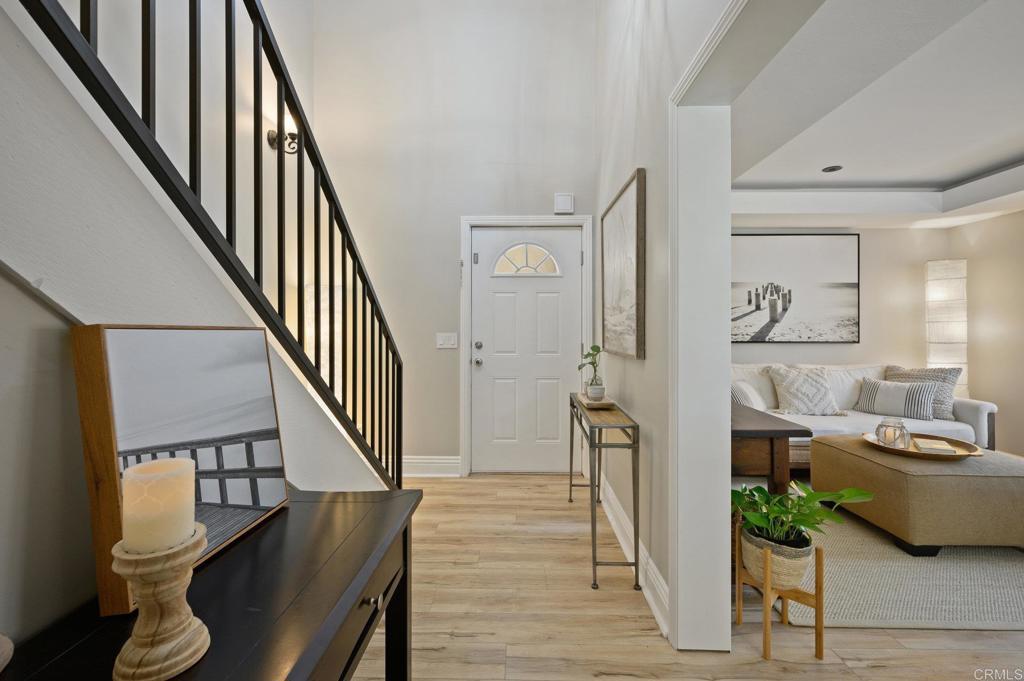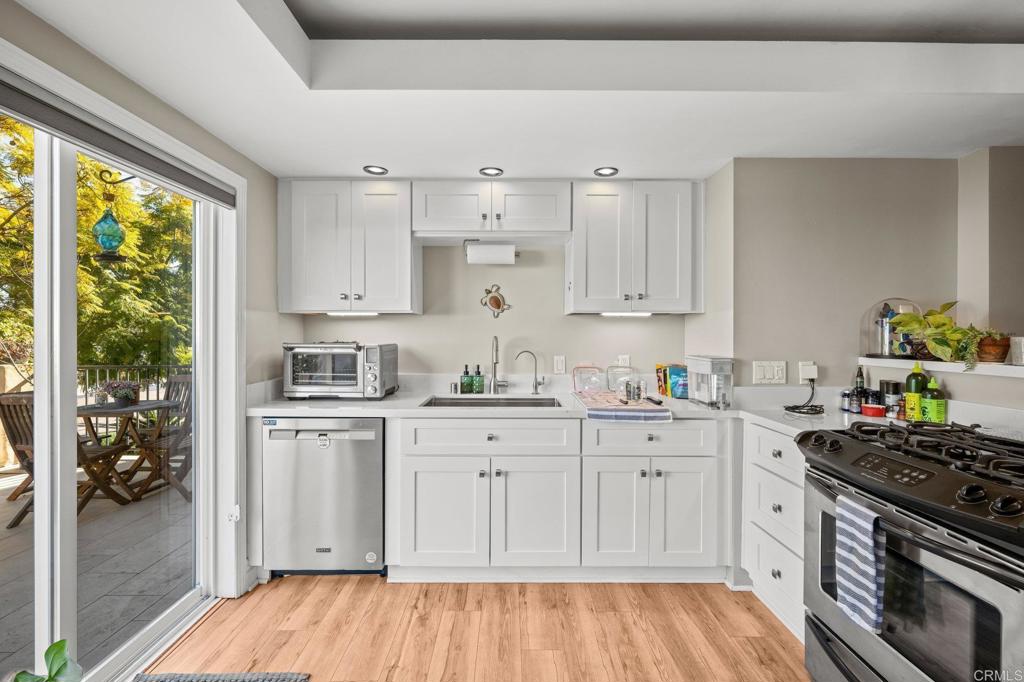Chic Coastal Living in Point Loma's Roseville Neighborhood! Step into this stunning 2-bedroom, 2-bathroom townhome and experience the perfect blend of style, comfort, and location. Light and bright with vaulted ceilings custom paint and sleek LVP flooring throughout the downstairs, this home offers a seamless, modern flow. The living room dazzles with tray ceilings, creating an open, airy feel, while custom lighting adds a warm and inviting ambiance. The remodeled kitchen is a chef's dream, featuring newer white cabinets, sparkling white quartz countertops, and stainless steel appliances. A large sliding glass door opens to your massive, elevated patio--recently re-tiled and perfect for indoor-outdoor living. Enjoy ocean breezes and the beauty of a blooming jacaranda tree overhead, creating a serene retreat. The main-level full bathroom boasts a newer vanity and a sleek shower. The primary suite upstairs offers a private balcony, a walk-in closet, and abundant natural light. A skylight brightens the upstairs full bathroom adding to the airy, open feel. The second bedroom is spacious and versatile, ideal for guests, an office, or a creative space. Plus, enjoy the convenience of an in-unit stackable washer and dryer. Gated secure one car garage space and one covered carport space with large storage closet. Prime Location Perks: Walking distance to America's Cup Harbor, local dining gems like Point Loma Seafoods, and sandy beaches. Minutes from entertainment hubs (Sports Arena), top-rated restaurants, and nightlife. Easy access to Naval Base, hospitals, Point Loma Nazarene University, major highways, and San Diego Airport. Just a short drive to downtown San Diego, San Diego Zoo, Sea World for even more excitement. Don't miss this rare opportunity to own a slice of coastal paradise in one of San Diego's most sought-after neighborhoods!