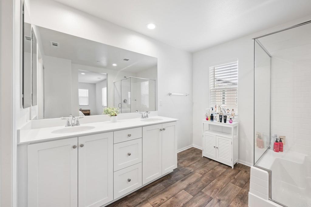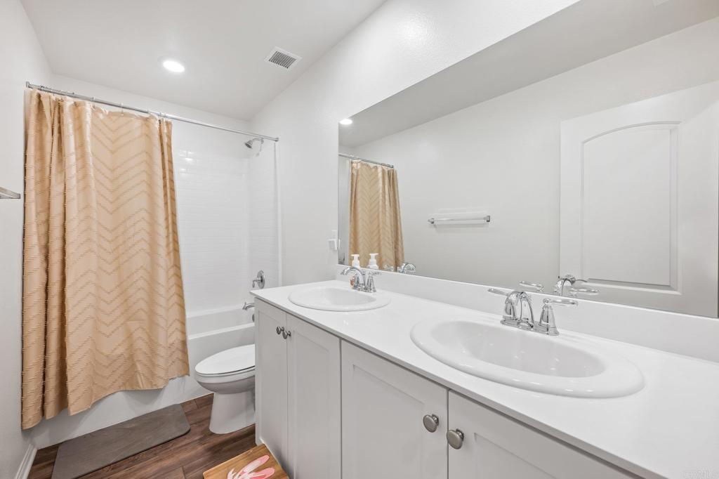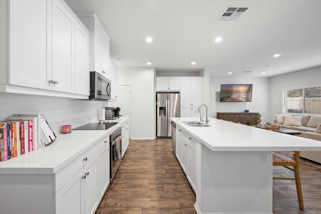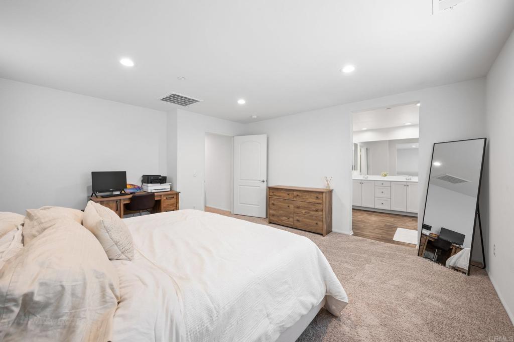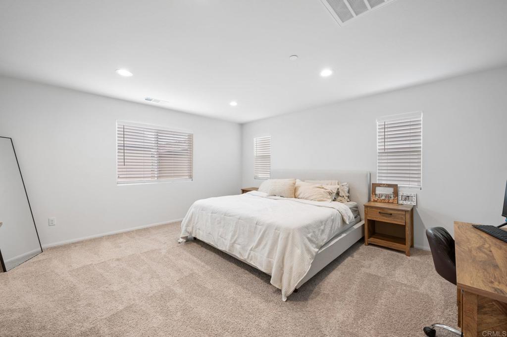 Nestled in the heart of Bonsall's coveted landscape, this exquisite residence epitomizes modern elegance and convenience. Crafted with meticulous attention to detail, this newer construction home boasts a seamless fusion of sophistication and functionality. Upon entering, be greeted by the inviting ambiance of upgraded flooring that guides you through the expansive living spaces. The main level unveils a welcoming layout, featuring a gourmet kitchen adorned with sleek finishes, white cabinets and white quartz countertops, highlighted by an oversized island - a culinary haven perfect for both intimate dinners and entertaining guests. Ascending upstairs, discover a versatile loft area, ideal for a home office, media room, or relaxation space. Four well-appointed bedrooms, including a serene primary suite, offer comfort and tranquility. The primary retreat boasts an ensuite bath, offering a sanctuary for relaxation and rejuvenation. Equipped with modern amenities, this smart home is designed for effortless living. From paid solar panels to air conditioning, every aspect is tailored for optimal comfort and sustainability. Recessed lighting throughout enhances the ambiance, while the low maintenance backyard with pavers provides a serene outdoor oasis. Embrace the coveted Bonsall lifestyle with easy access to the 76 freeway and proximity to top-rated schools. Situated adjacent to a proposed new park site, residents will enjoy a plethora of recreational opportunities, including basketball courts, baseball fields, tennis courts, soccer fields, playgrounds, and more. With low HOA dues and front yard landscaping maintenance included, this residence offers a truly turnkey living experience. Experience the epitome of luxury living amidst the serene surroundings of Bonsall.